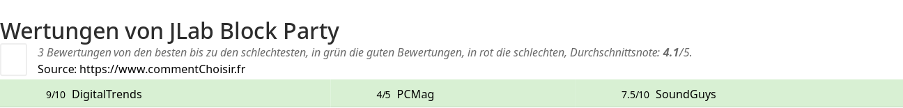 Hier sind alle 3 tests und Bewertungen zu Lautsprecher JLab Block Party mit den 3 Bewertungen und Kommentaren der Tester in ihrem Test.
