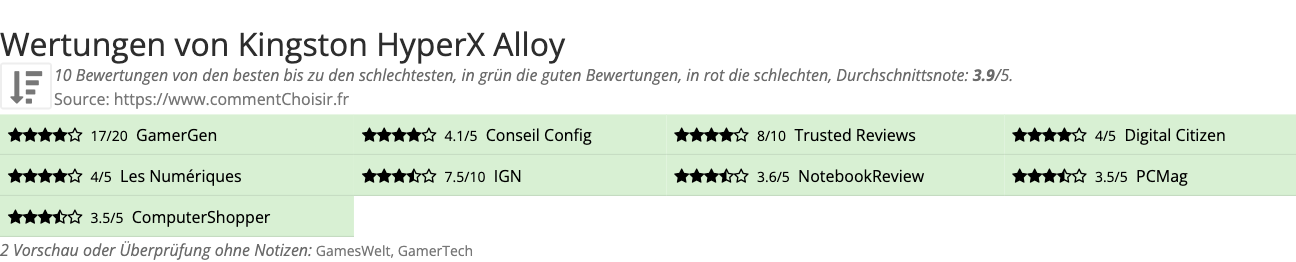 Zum besseren Vergleich haben wir nach den Vor- und Nachteilen von Kingston HyperX Alloy und den Bewertungen spezialisierter Websites gesucht.