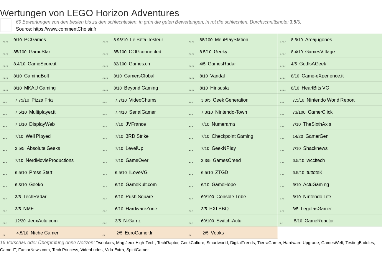 Zum besseren Vergleich haben wir nach den Vor- und Nachteilen von LEGO Horizon Adventures und den Bewertungen spezialisierter Websites gesucht.
