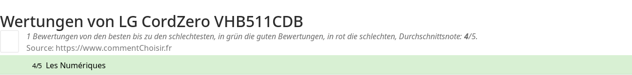 LG CordZero VHB511CDB test : Wir haben nur eine Rezension zu diesem Produkt gefunden, daher klingt es schwierig, einen globalen Ratschlag zu geben. Diese durchschnittliche Bewertung von 4/5 ist möglicherweise nicht repräsentativ.