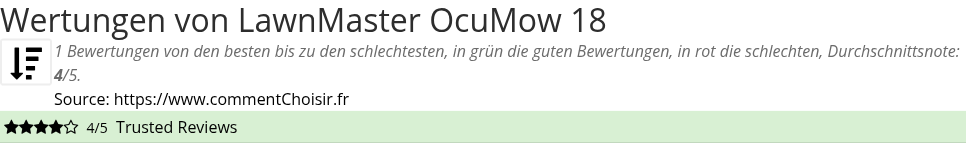 LawnMaster OcuMow 18 test : Wir haben nur eine Rezension zu diesem Produkt gefunden, daher klingt es schwierig, einen globalen Ratschlag zu geben. Diese durchschnittliche Bewertung von 4/5 ist möglicherweise nicht repräsentativ.
