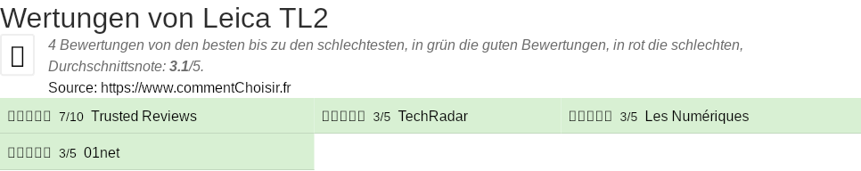 Hier sind alle 4 tests und Bewertungen zu Kameras Leica TL2 mit den 4 Bewertungen und Kommentaren der Tester in ihrem Test.