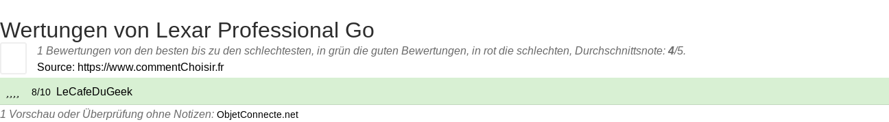 - 2 Testberichte und Meinungen mit 1 Bewertungen zum Lexar Professional Go