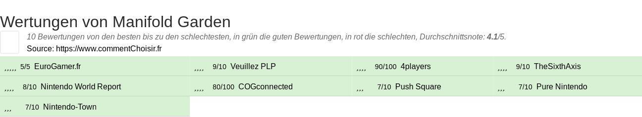 Wertungen von Manifold Garden