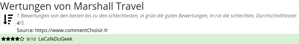 - 1 Testberichte und Meinungen mit 1 Bewertungen zum Marshall Travel