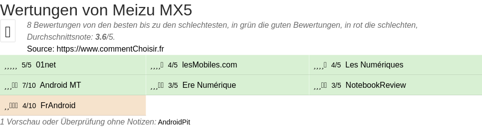 Hier sind alle 9 tests und Bewertungen zu Smartphones Meizu MX5 mit den 8 Bewertungen und Kommentaren der Tester in ihrem Test.