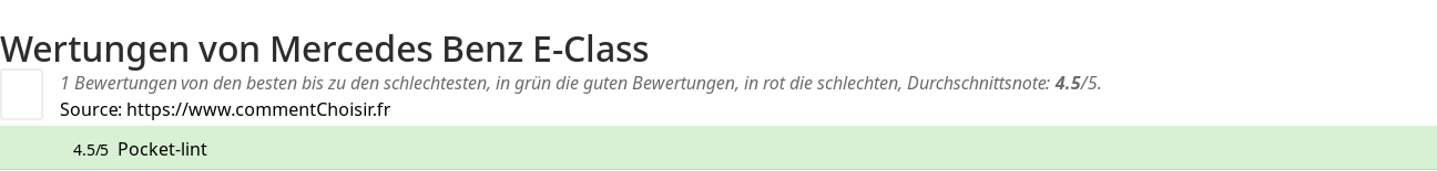 - 1 Testberichte und Meinungen mit 1 Bewertungen zum Mercedes Benz E-Class