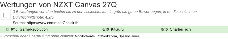 Hier sind alle 6 tests und Bewertungen zu Monitore NZXT Canvas 27Q mit den 3 Bewertungen und Kommentaren der Tester in ihrem Test.