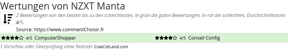 NZXT Manta im Test: 3 Reviews und 2 Bewertungen — Durchschnitt: 4/5