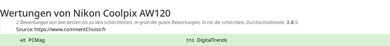 Hier sind alle 2 tests und Bewertungen zu Kameras Nikon Coolpix AW120 mit den 2 Bewertungen und Kommentaren der Tester in ihrem Test.