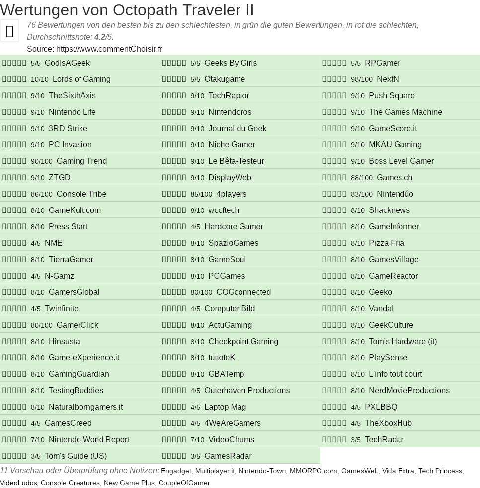 - 88 Testberichte und Meinungen mit 76 Bewertungen zum Octopath Traveler II