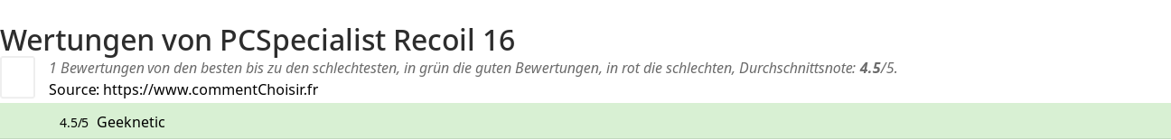 Welche Note hat PCSpecialist Recoil 16 bekommen?