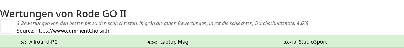 Hier sind alle 3 tests und Bewertungen zu Gaming Rode GO II mit den 3 Bewertungen und Kommentaren der Tester in ihrem Test.