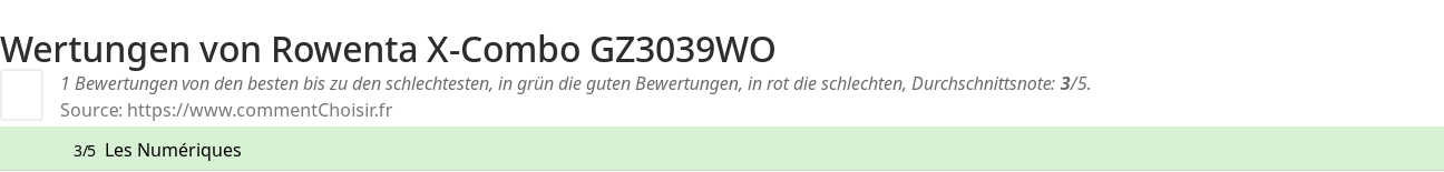 Rowenta X-Combo GZ3039WO test : Wir haben nur eine Rezension zu diesem Produkt gefunden, daher klingt es schwierig, einen globalen Ratschlag zu geben. Diese durchschnittliche Bewertung von 3/5 ist möglicherweise nicht repräsentativ.