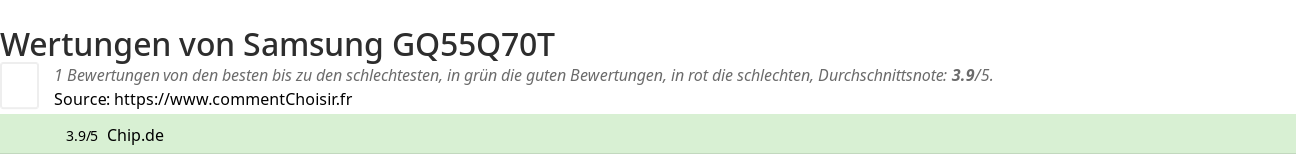 Hier sind alle 5 tests und Bewertungen zu Fernseher Samsung GQ55Q70T mit den 5 Bewertungen und Kommentaren der Tester in ihrem Test.