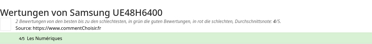 Hier sind alle 5 tests und Bewertungen zu Fernseher Samsung UE48H6400 mit den 5 Bewertungen und Kommentaren der Tester in ihrem Test.