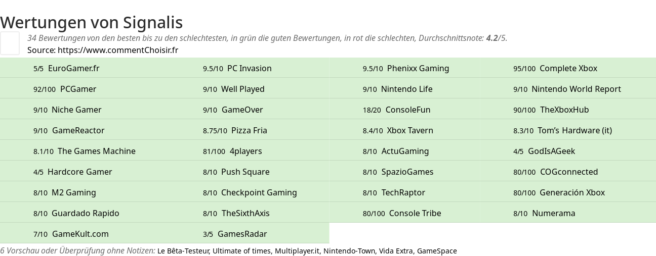 - 40 Testberichte und Meinungen mit 34 Bewertungen zum Signalis