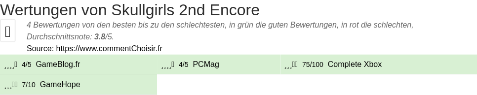 Hier sind alle 4 tests und Bewertungen zu Videospiele Skullgirls 2nd Encore mit den 4 Bewertungen und Kommentaren der Tester in ihrem Test.