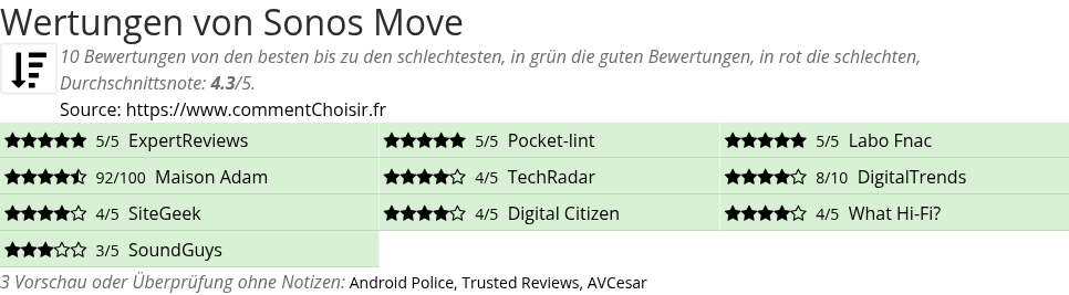 Die Bewertungen von Websites und Internetmagazinen können voreingenommen sein, zumindest bei Kundenrezensionen und Benutzern, die Sonos Move auf Amazon oder Fnac gekauft haben, sind wir sicher, dass wir echte Bewertungen zu diesem Produkt haben.
