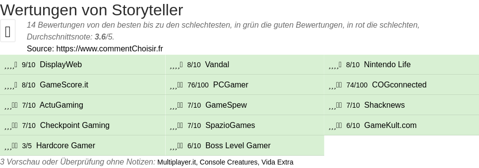 Storyteller im Test: 17 Reviews und 14 Bewertungen — Durchschnitt: 3.6/5