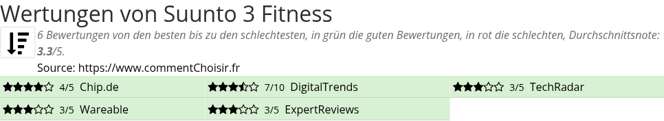 Die Bewertungen von Websites und Internetmagazinen können voreingenommen sein, zumindest bei Kundenrezensionen und Benutzern, die Suunto 3 Fitness auf Amazon oder Fnac gekauft haben, sind wir sicher, dass wir echte Bewertungen zu diesem Produkt haben.