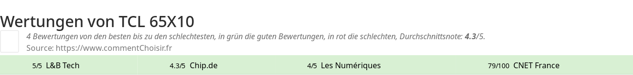 TCL 65X10 test : Mit einer durchschnittlichen Bewertung von 4.6/5 können Sie TCL 65X10 mit geschlossenen Augen (oder fast) kaufen. Die Meinungen der Tester scheinen einhellig zu sein!