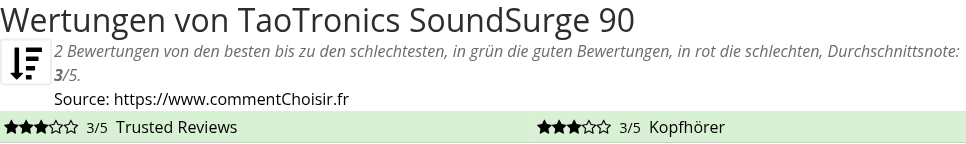 TaoTronics SoundSurge 90 im Test: 2 Reviews und 2 Bewertungen — Durchschnitt: 3/5