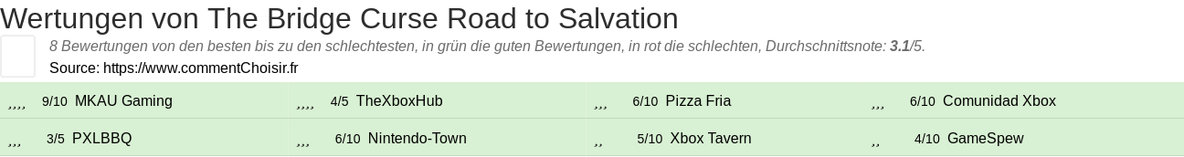 Hier sind alle 8 tests und Bewertungen zu Videospiele The Bridge Curse Road to Salvation mit den 8 Bewertungen und Kommentaren der Tester in ihrem Test.