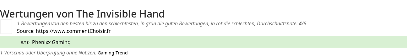 The Invisible Hand im Test: 2 Reviews und 1 Bewertungen — Durchschnitt: 4/5