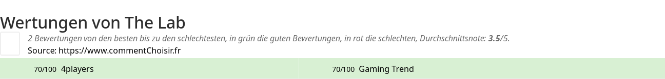 The Lab im Test: 2 Reviews und 2 Bewertungen — Durchschnitt: 3.5/5