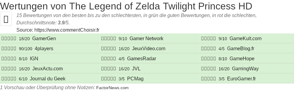 Zum besseren Vergleich haben wir nach den Vor- und Nachteilen von The Legend of Zelda Twilight Princess HD und den Bewertungen spezialisierter Websites gesucht.