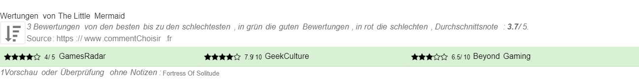 Zum besseren Vergleich haben wir nach den Vor- und Nachteilen von The Little Mermaid und den Bewertungen spezialisierter Websites gesucht.