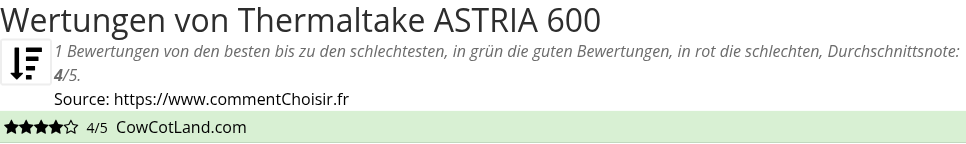 Thermaltake ASTRIA 600 im Test: 1 Reviews und 1 Bewertungen — Durchschnitt: 4/5