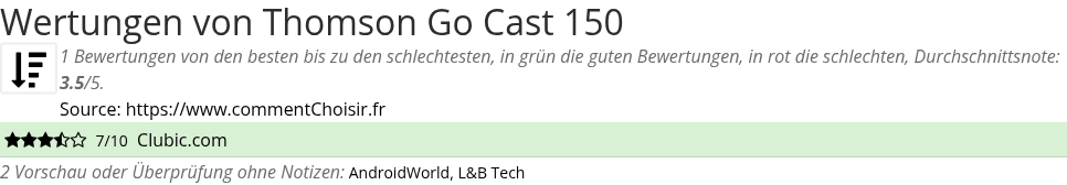 - 3 Testberichte und Meinungen mit 1 Bewertungen zum Thomson Go Cast 150