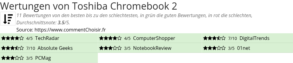 Wertungen von Toshiba Chromebook 2