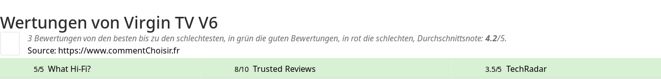 Hier sind alle 4 tests und Bewertungen zu Media Player Virgin TV V6 mit den 3 Bewertungen und Kommentaren der Tester in ihrem Test.
