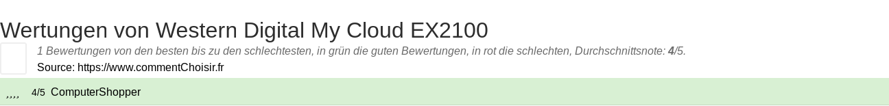 - 1 Testberichte und Meinungen mit 1 Bewertungen zum Western Digital My Cloud EX2100