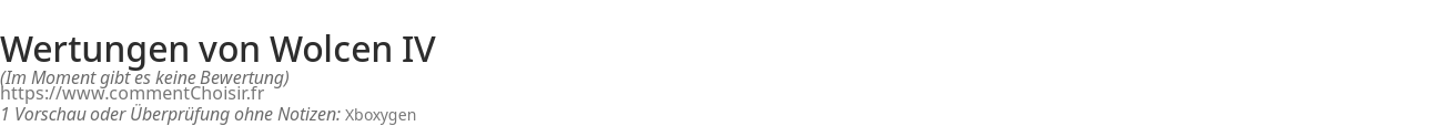 - 1 Testberichte und Meinungen mit 0 Bewertungen zum Wolcen IV