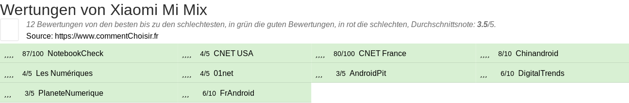 Wertungen von Xiaomi Mi Mix