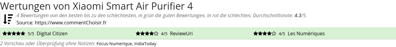 Hier sind alle 6 tests und Bewertungen zu Luftreiniger Xiaomi Smart Air Purifier 4 mit den 4 Bewertungen und Kommentaren der Tester in ihrem Test.