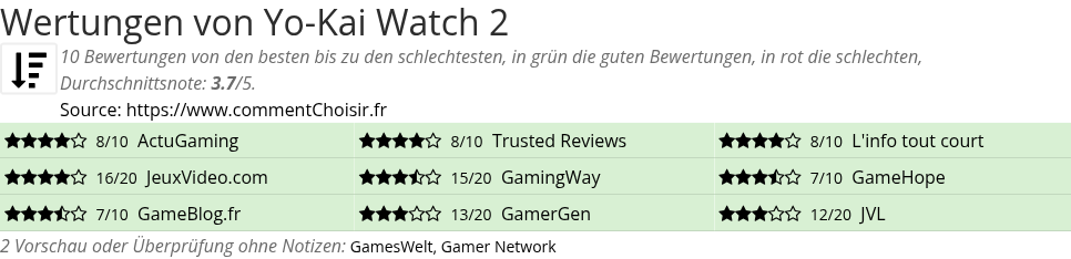 Zum besseren Vergleich haben wir nach den Vor- und Nachteilen von Yo-Kai Watch 2 und den Bewertungen spezialisierter Websites gesucht.