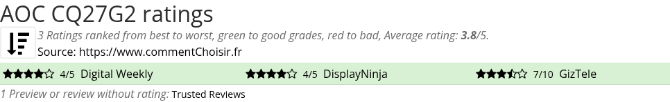 Theses reviews and tests from Laptops magazines and websites give 3 ratings, we get this average rating to this AOC product : 3.8/5.