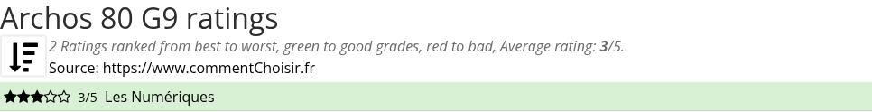 Theses reviews and tests from Tablets magazines and websites give 2 ratings, we get this average rating to this Archos product : 3/5.