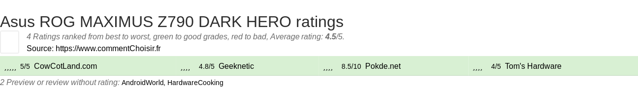 Check all the 6 reviews find on Components Asus ROG MAXIMUS Z790 DARK HERO, with the 4 ratings, comments, pros & cons from the reviewers.