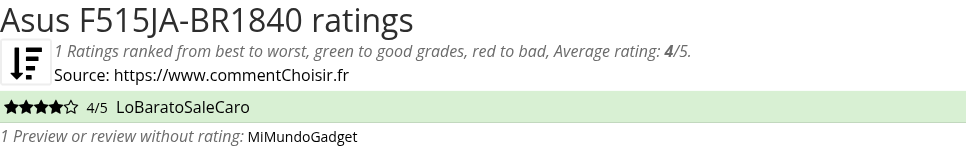 Asus F515JA-BR1840 review : We found only one review on this product, so it sounds difficult to give a global advice, this average rating of 4/5 may not be representative.