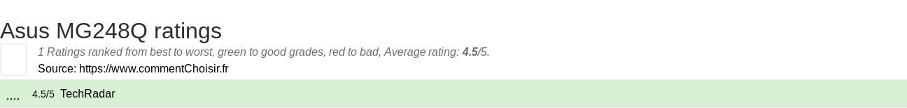 Theses reviews and tests from Monitors magazines and websites give 1 ratings, we get this average rating to this Asus product : 4/5.