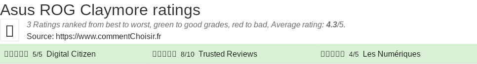Theses reviews and tests from Keyboards magazines and websites give 3 ratings, we get this average rating to this Asus product : 4.3/5.
