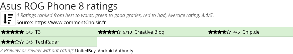 Theses reviews and tests from Smartphones magazines and websites give 4 ratings, we get this average rating to this Asus product : 4.1/5.