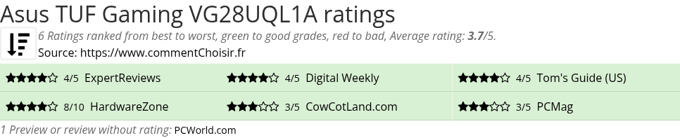 Theses reviews and tests from Monitors magazines and websites give 6 ratings, we get this average rating to this Asus product : 3.7/5.