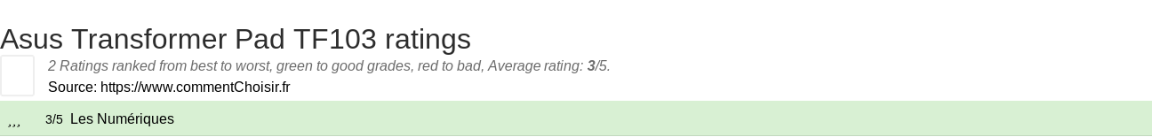 Theses reviews and tests from Tablets magazines and websites give 2 ratings, we get this average rating to this Asus product : 3/5.